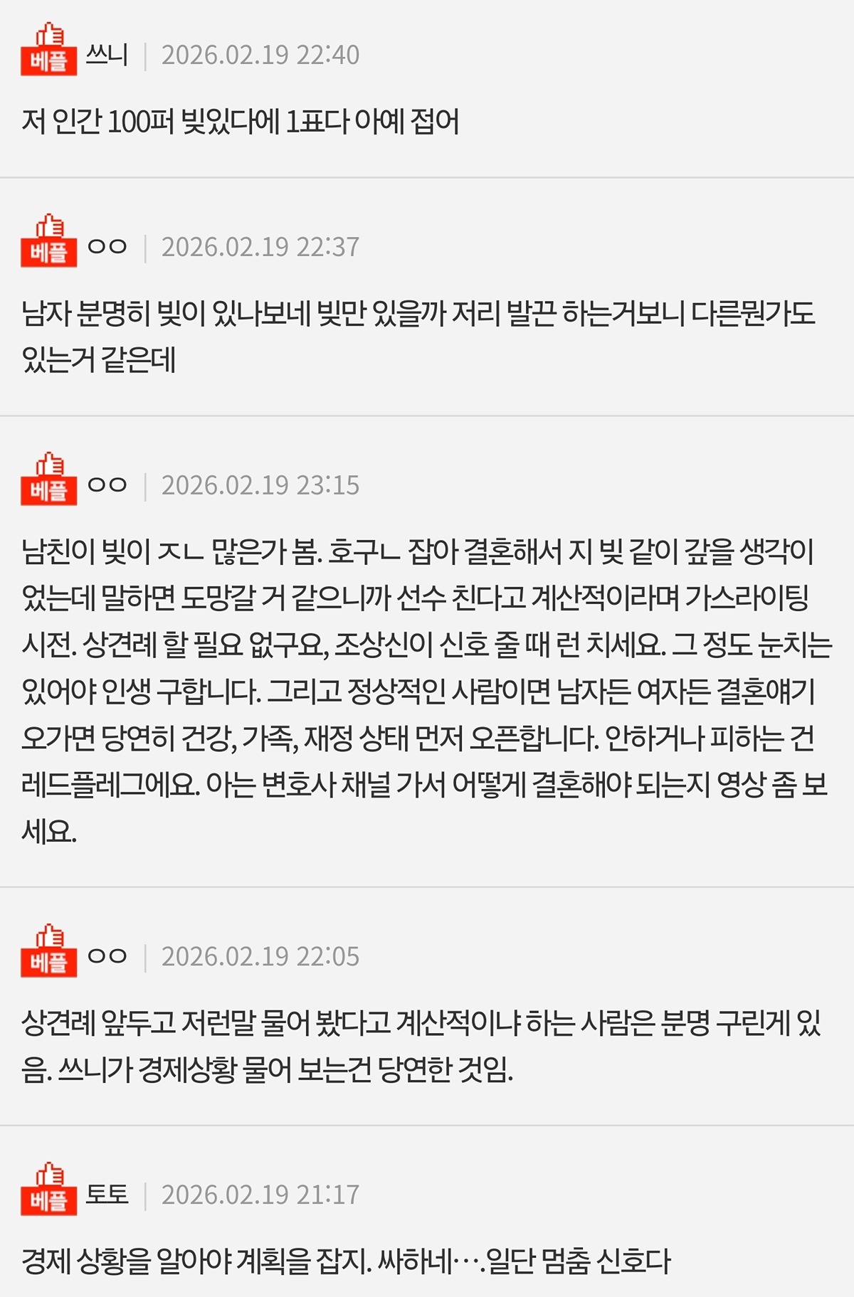 상견례 직전인데 빚 물어봤다가 분위기 싸해졌어요