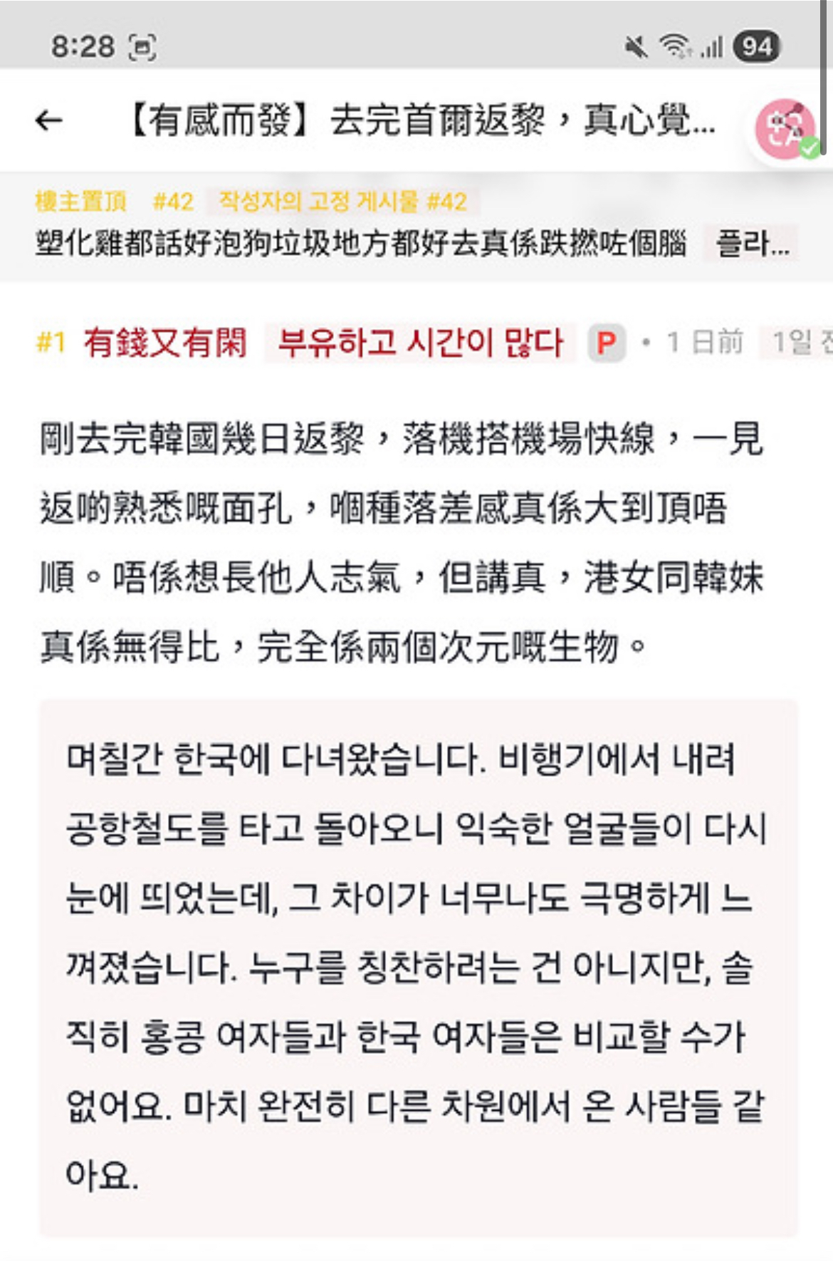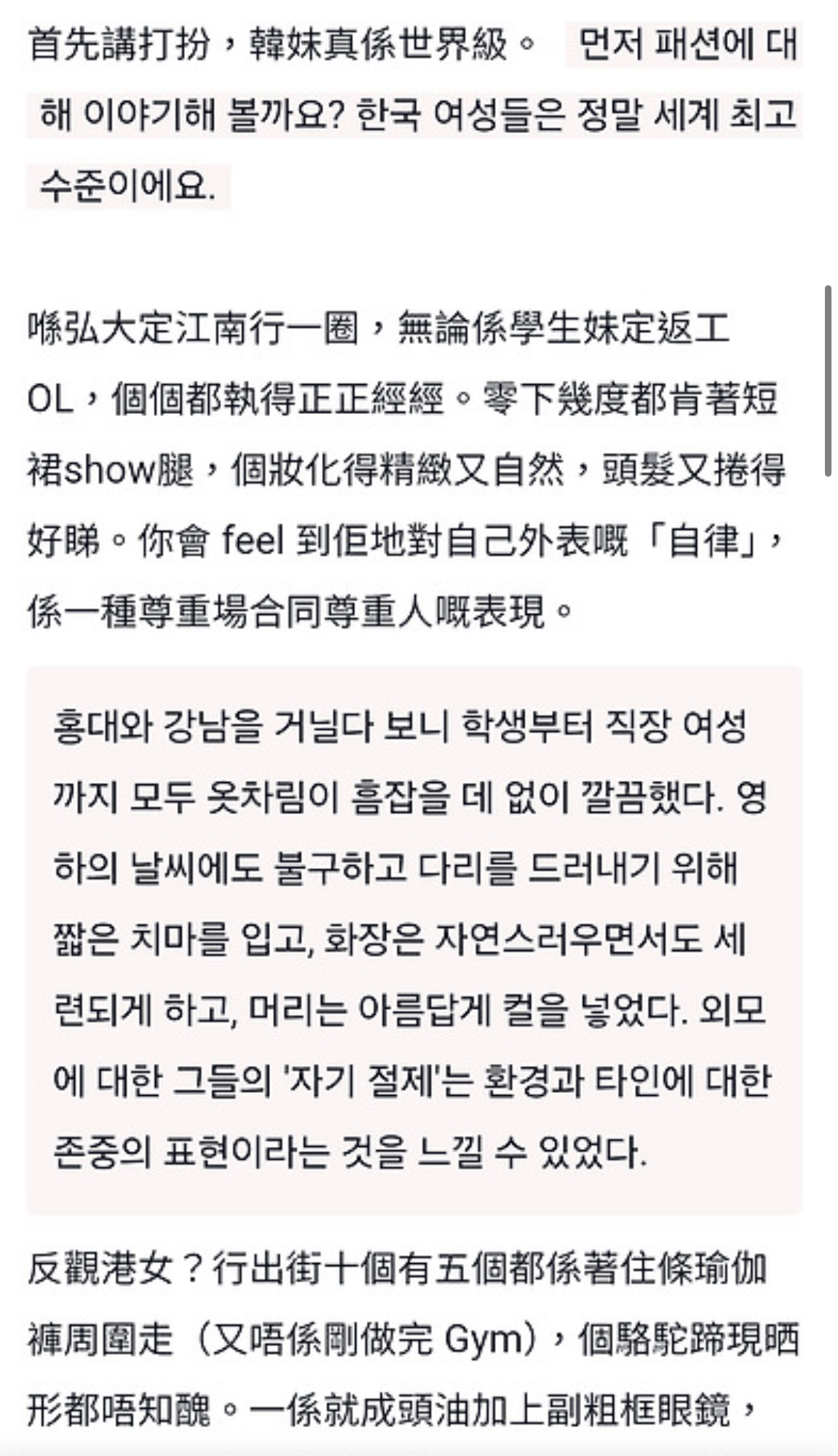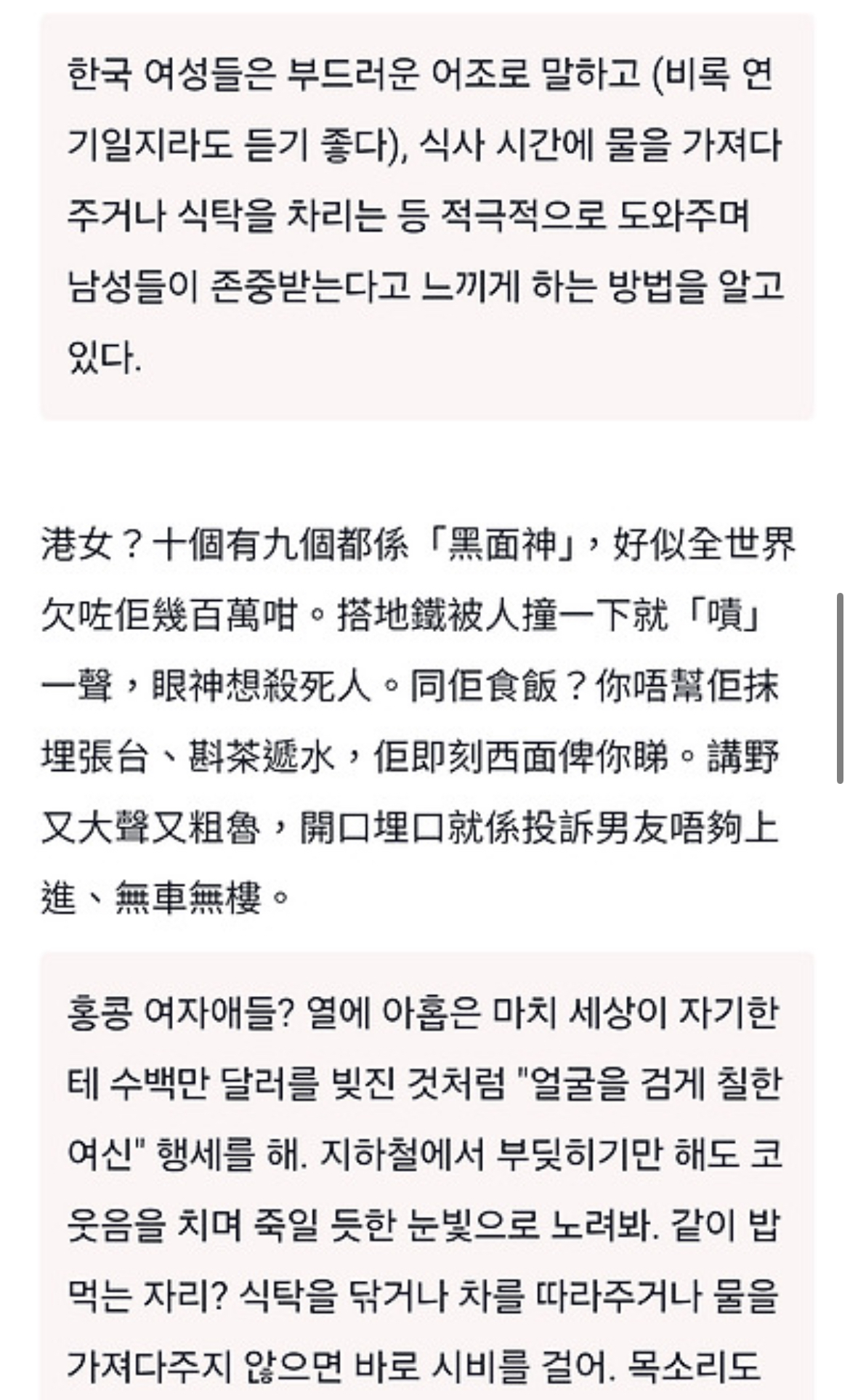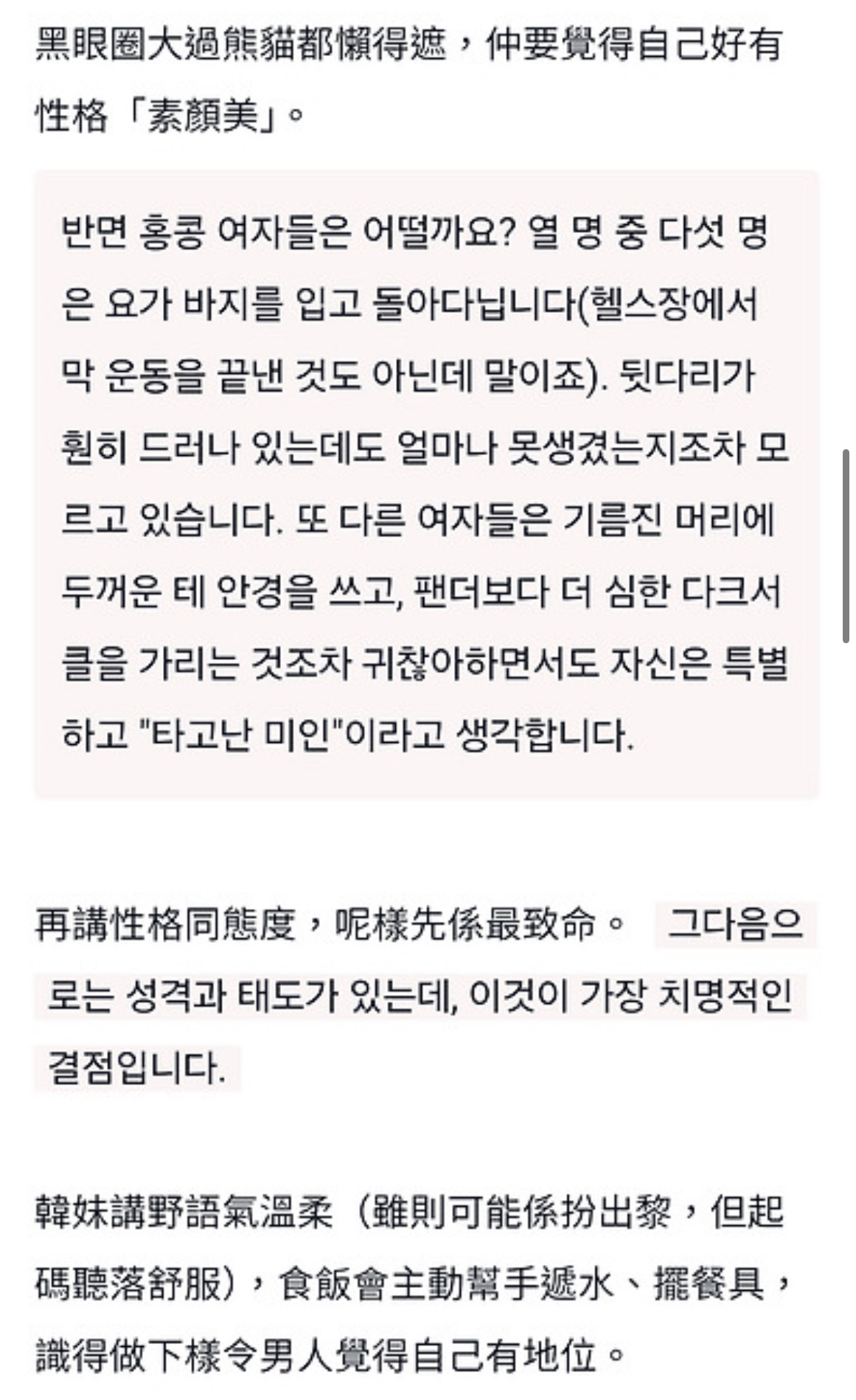 한국 여성들에 대한 홍콩남의 생각