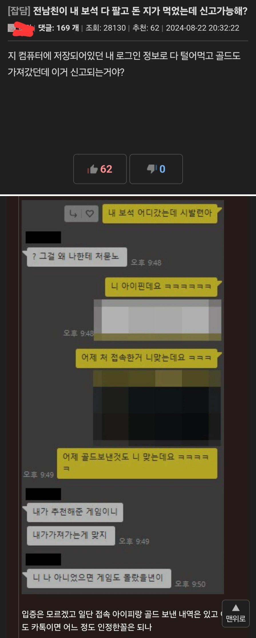 헤어진 전여친 게임계정 털어버림