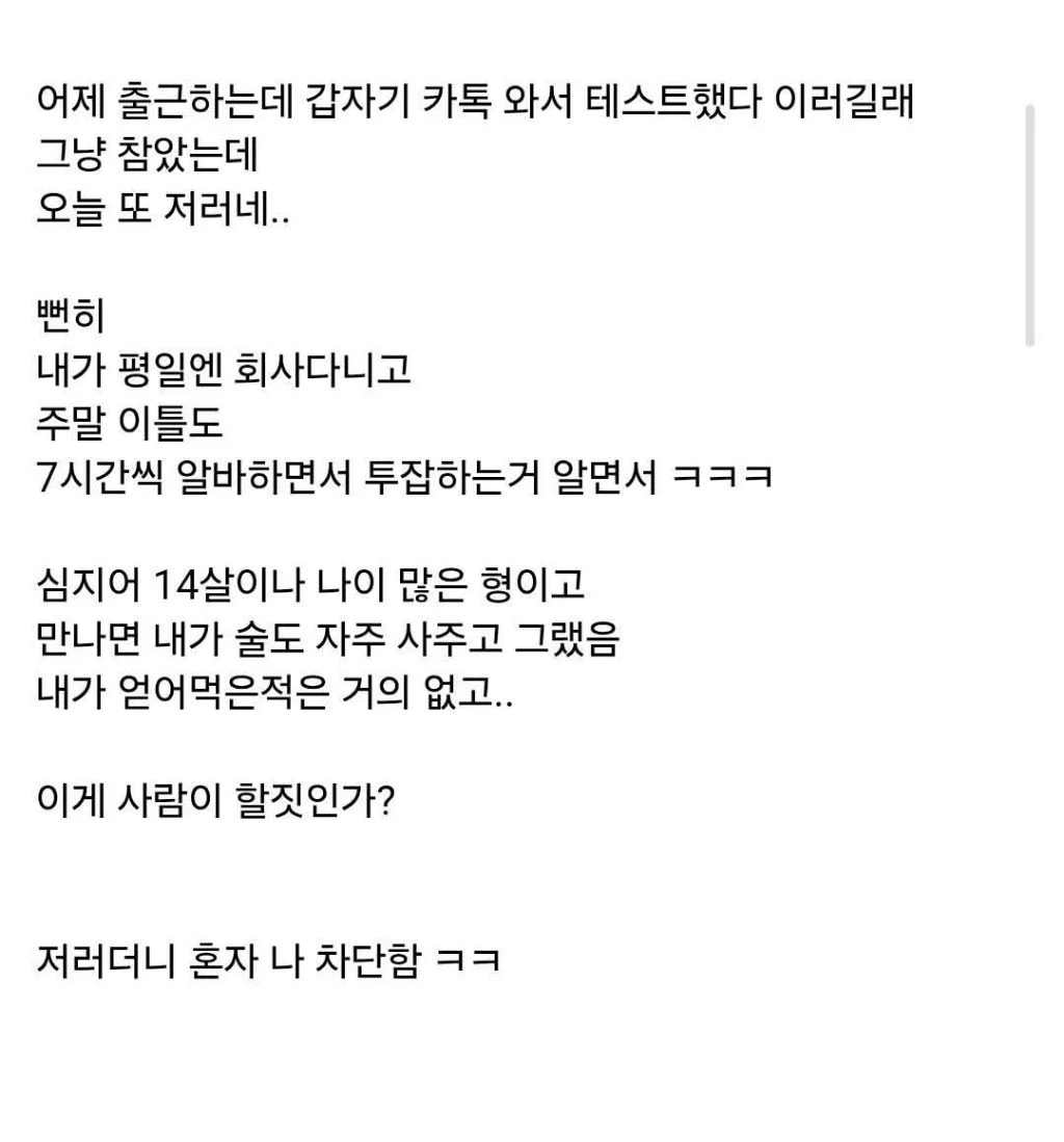 아는 형한테 갑자기 손절 당함