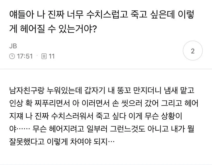 갑자기 똥꼬를 만지더니 헤어지자는 남친