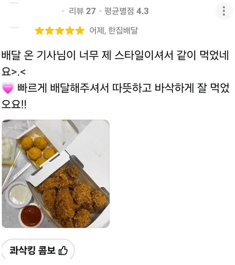배달 온 기사님이 너무 제 스타일이셔서