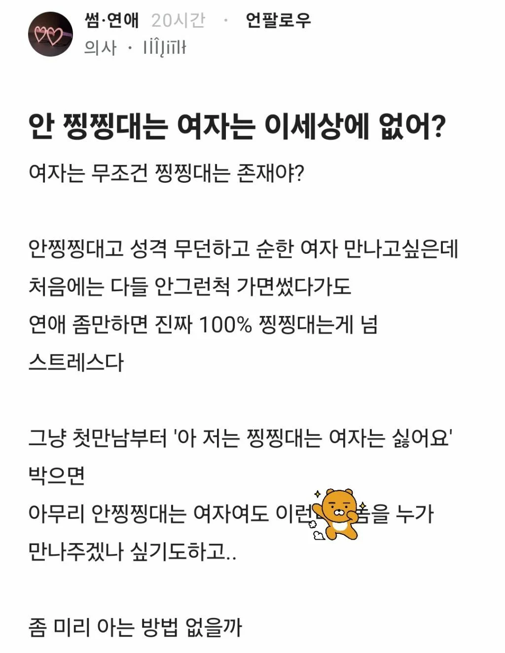 안 찡찡대는 여자는 세상에 없음?