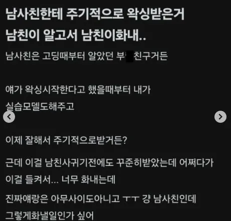 남사친한테 주기적으로 왁싱 받은거 남친이 알고 화내...