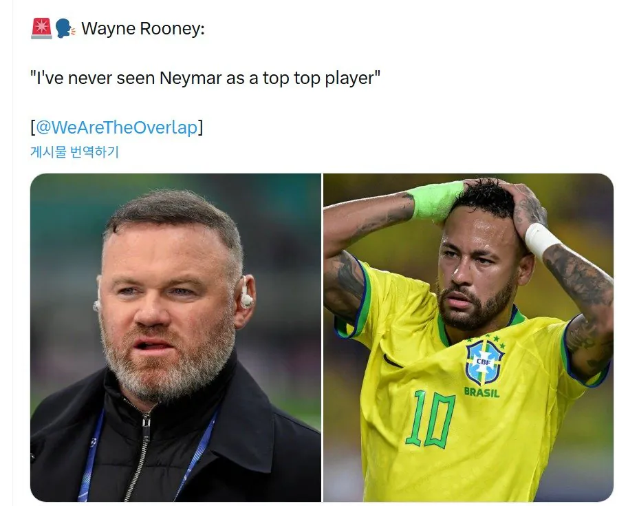 루니 "네이마르가 최정상급 선수였다고 느껴본 적 없다."
