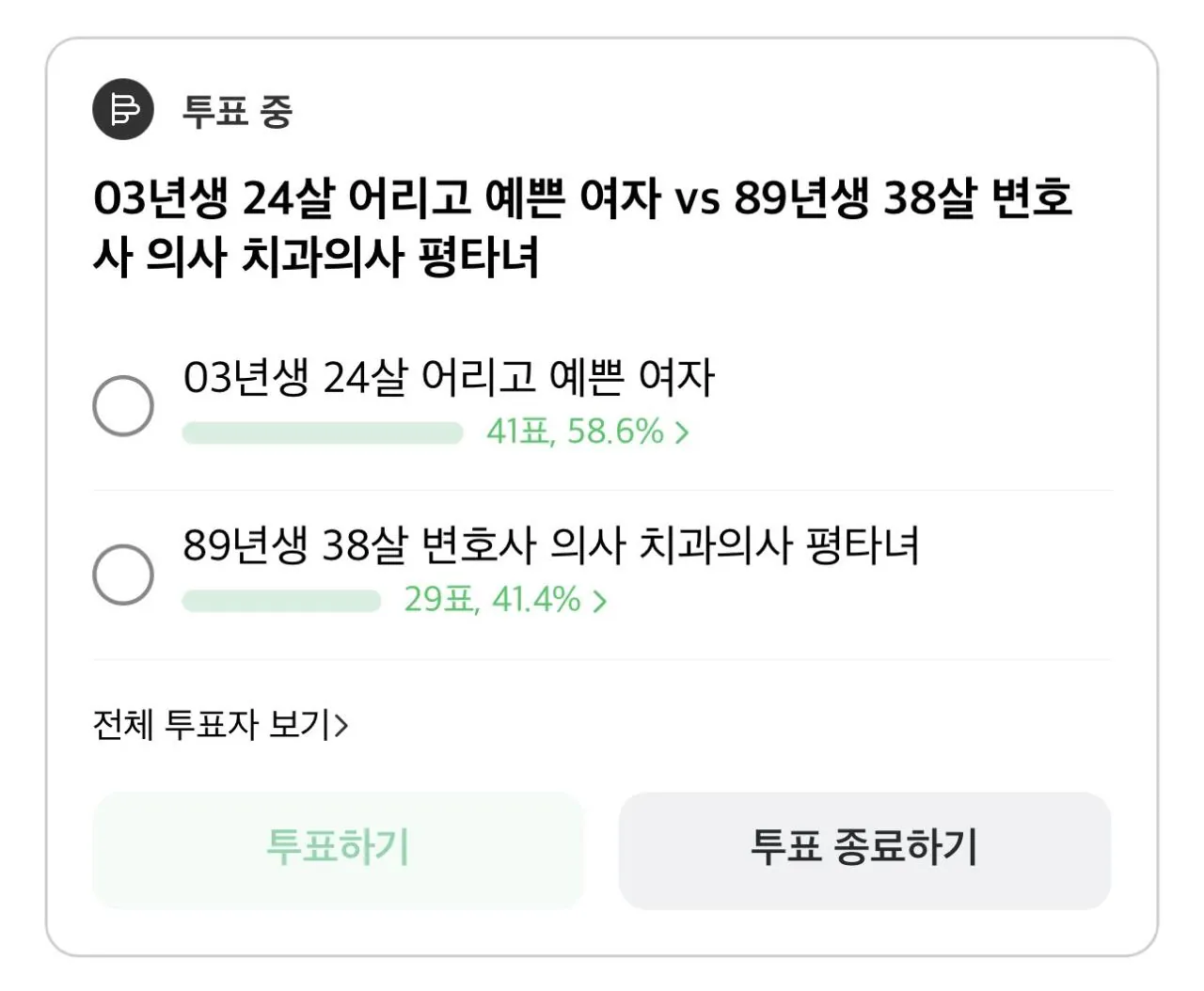24살 어리고 예쁜 여자 vs 38세 전문직 평타녀