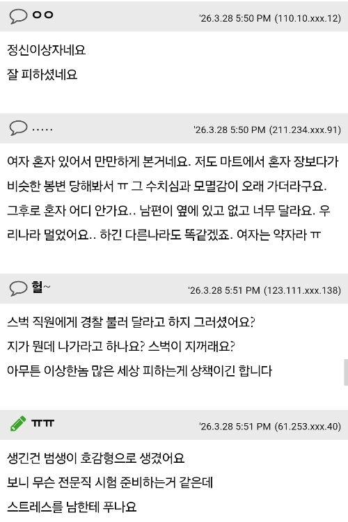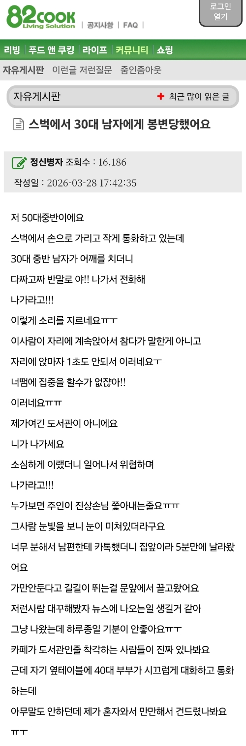 스타벅스에서 30대 남자에게 봉변당했어요
