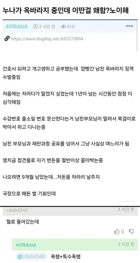 누나가 옥바라지 중인데 이딴걸 왜함? 노이해