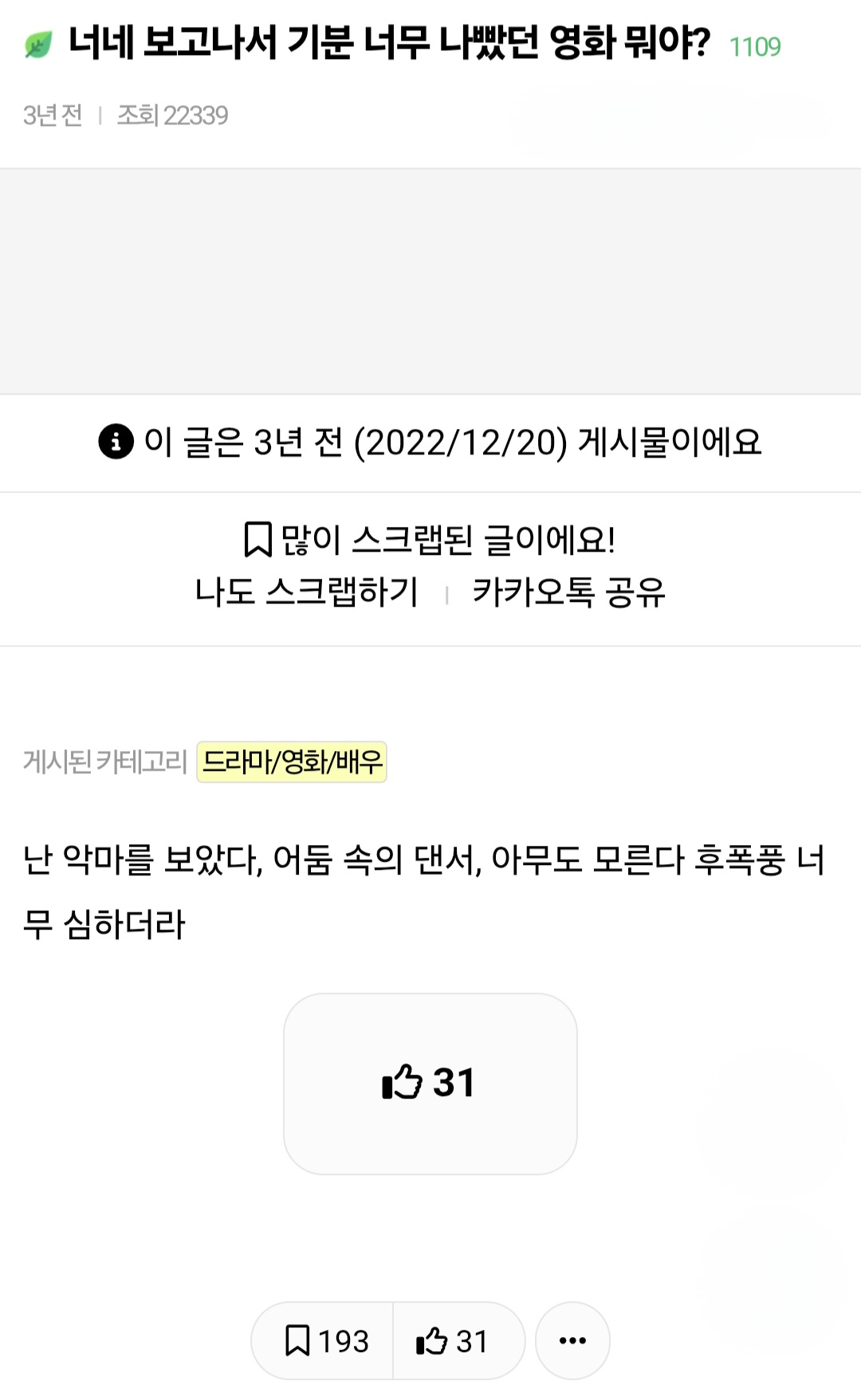 너네 보고나서 기분 너무 나빴던 영화 뭐야?
