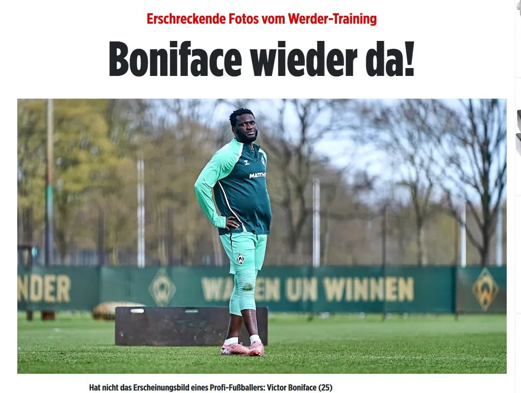 한때 레버쿠젠의 공격수 현 브레멘으로 임대가있는 빅터 보니페이스