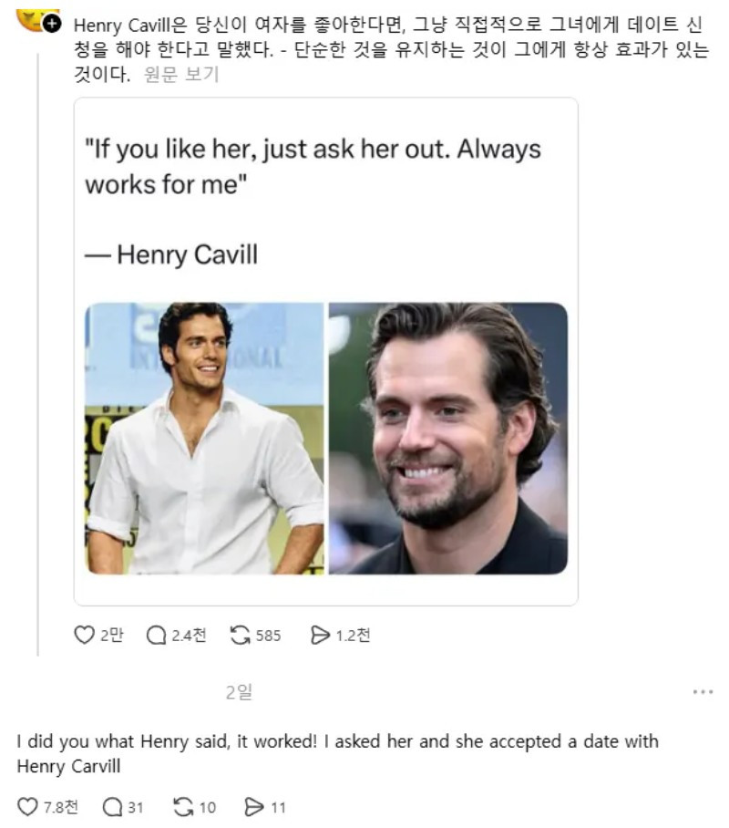 헨리 카빌이 말하는 여자 꼬시기 성공법