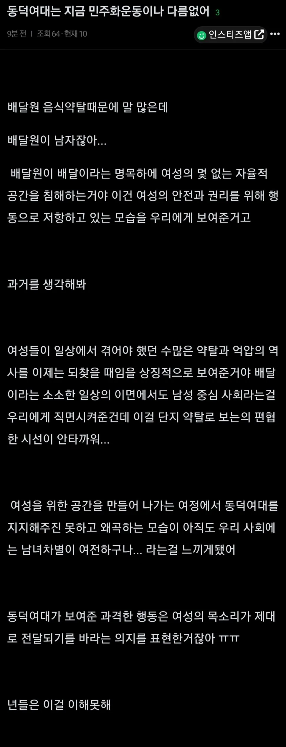 훌쩍훌쩍 동덕여대 당시 배달원 ㅠㅠ
