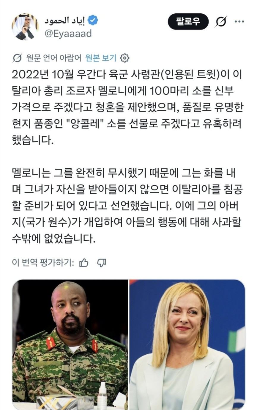 멜로니에게 청혼했던 우간다 육군사령관