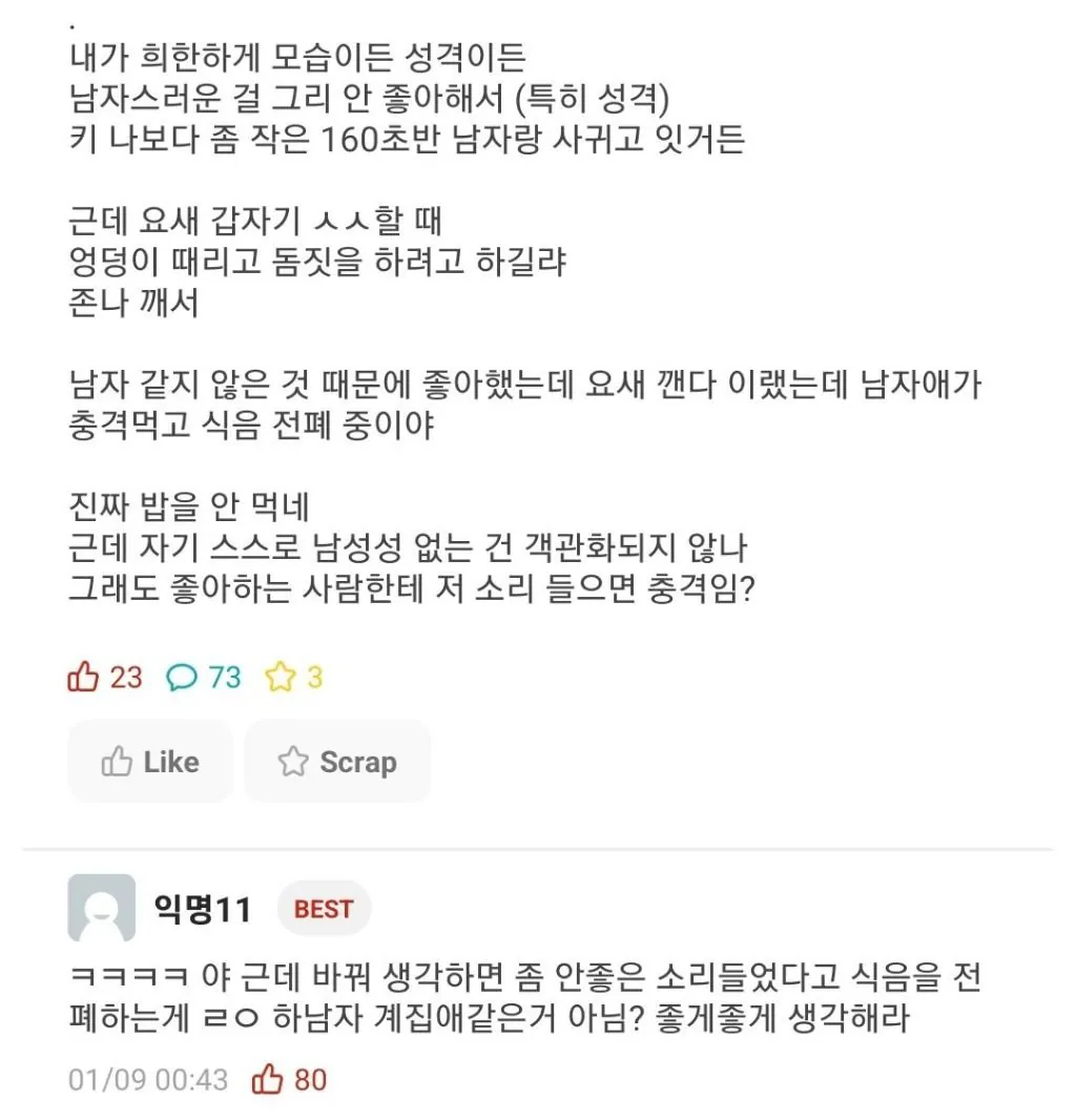 일부러 160초반 남자와 사귄다는 여자의 성관계 썰