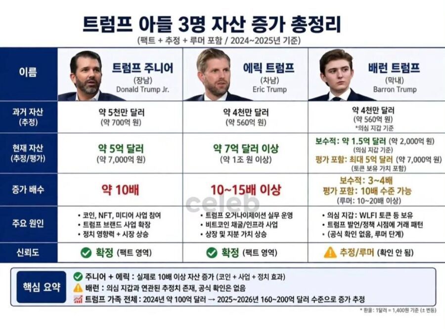 트럼프 아들 3형제 재산 증가율 ㄷㄷ