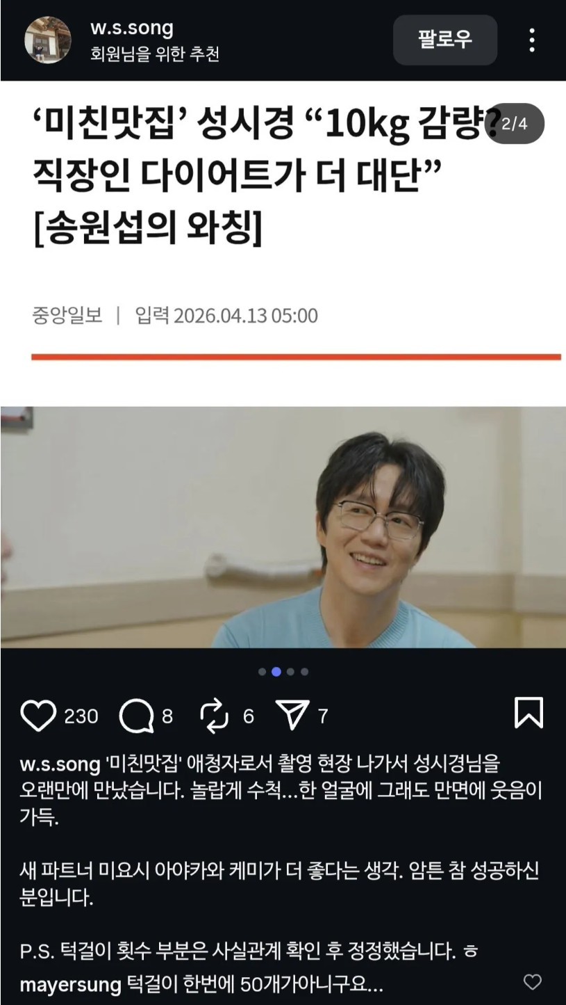 해당 인터뷰한 송원섭 기자 인스타에 빡쳐서 댓글 남김ㅋㅋㅋ