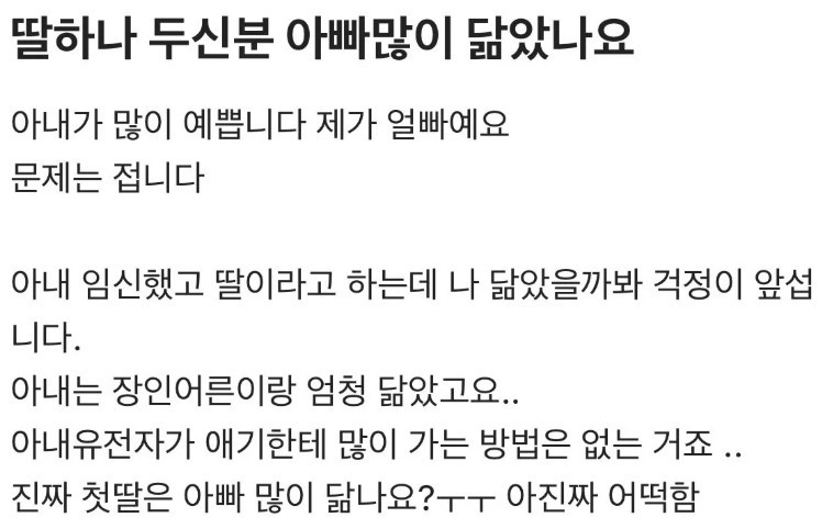 아내가 딸을 임신했는데 불안한 남편