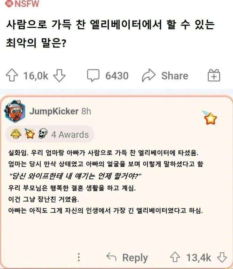 사람으로 가득 찬 엘리베이터에서 할 수 있는 최악의 말
