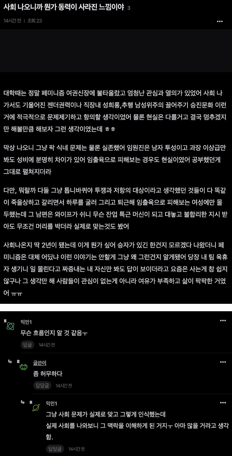 나이를 먹고 사회에 나온 페미니스트들 근황