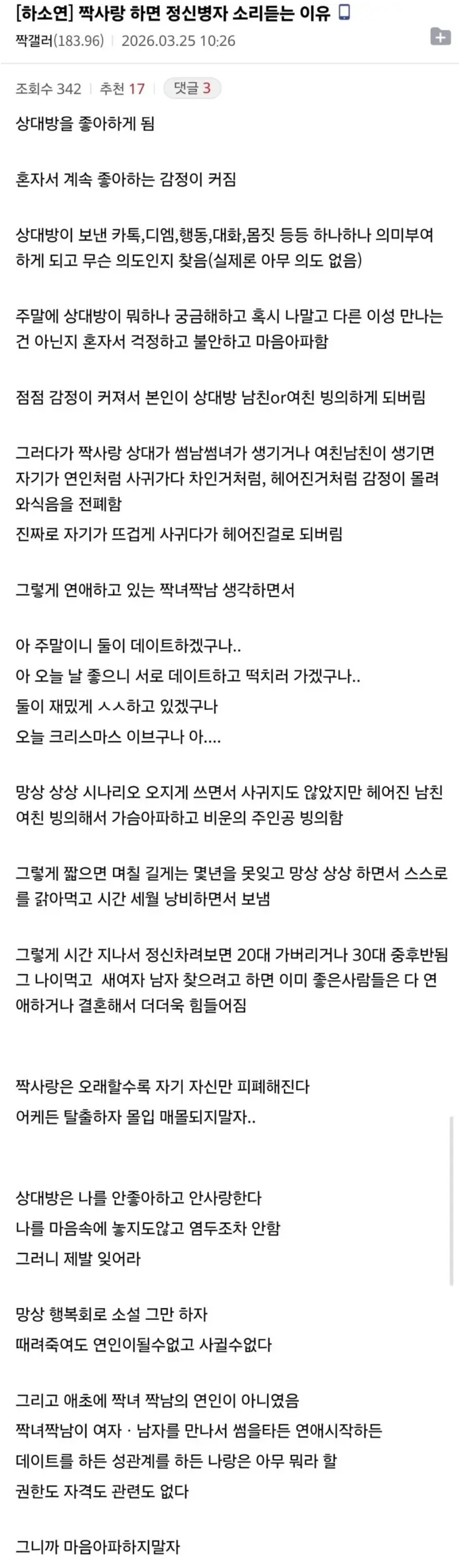 짝사랑 하면 정신병자 소리 듣는이유