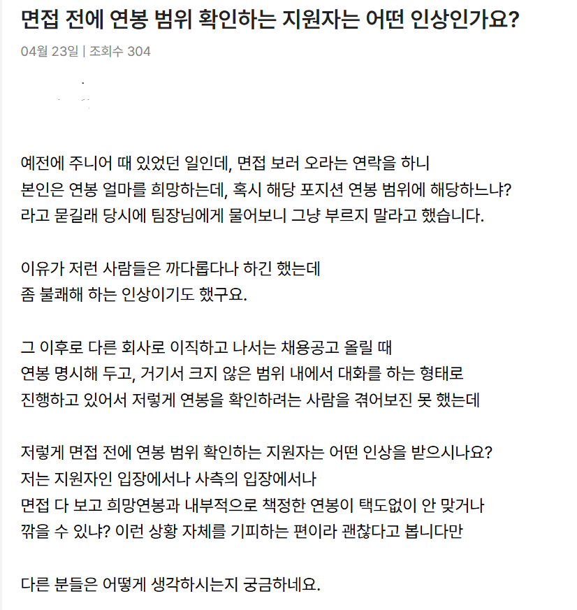 면접 전에 연봉 확인하는 지원자, 이상하다? 이상할거 없다?