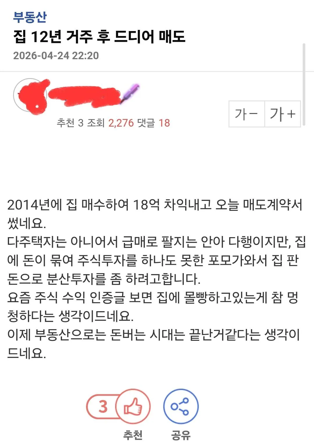 커뮤글 화제 1주택자 집팔고 무주택 포지션 돌입