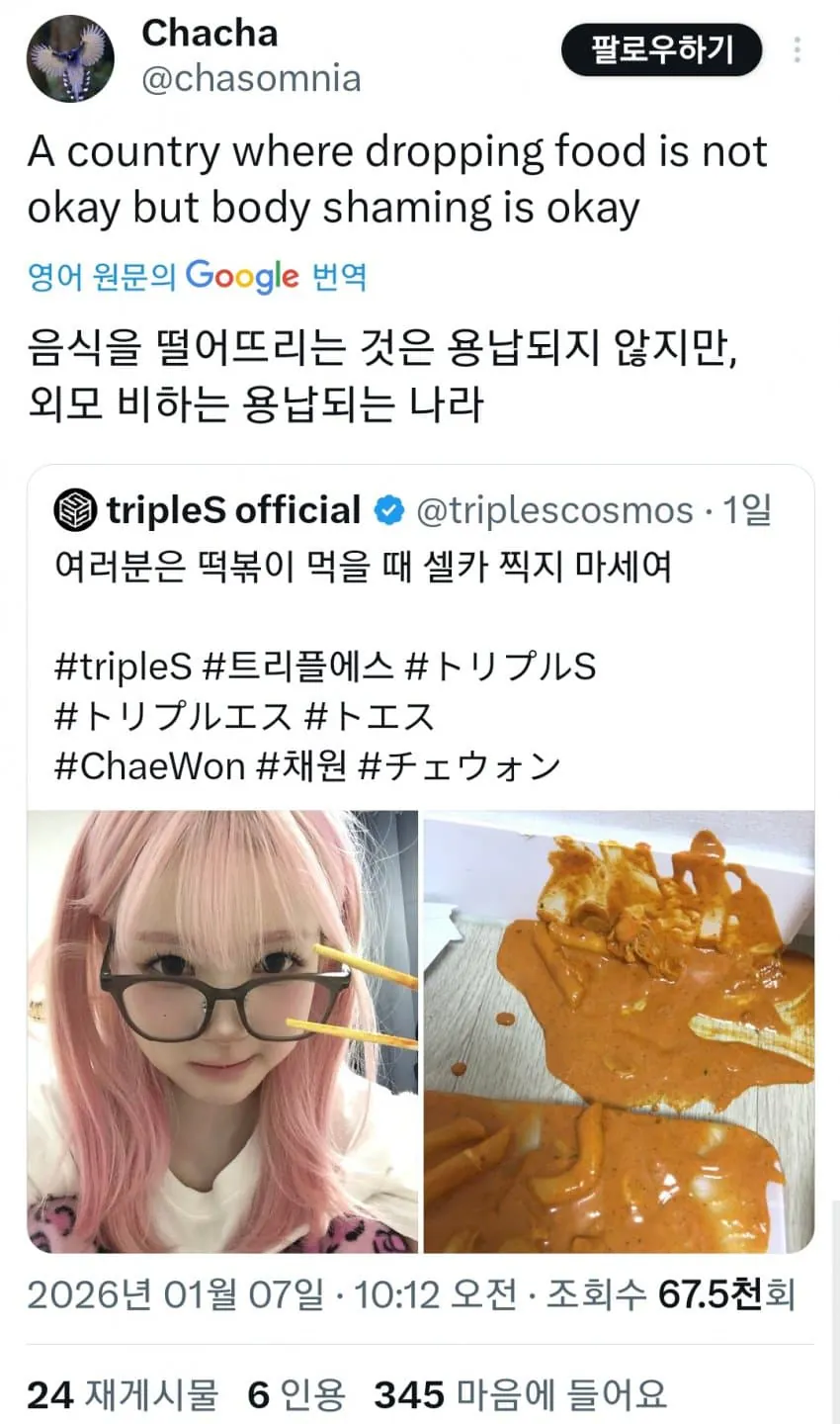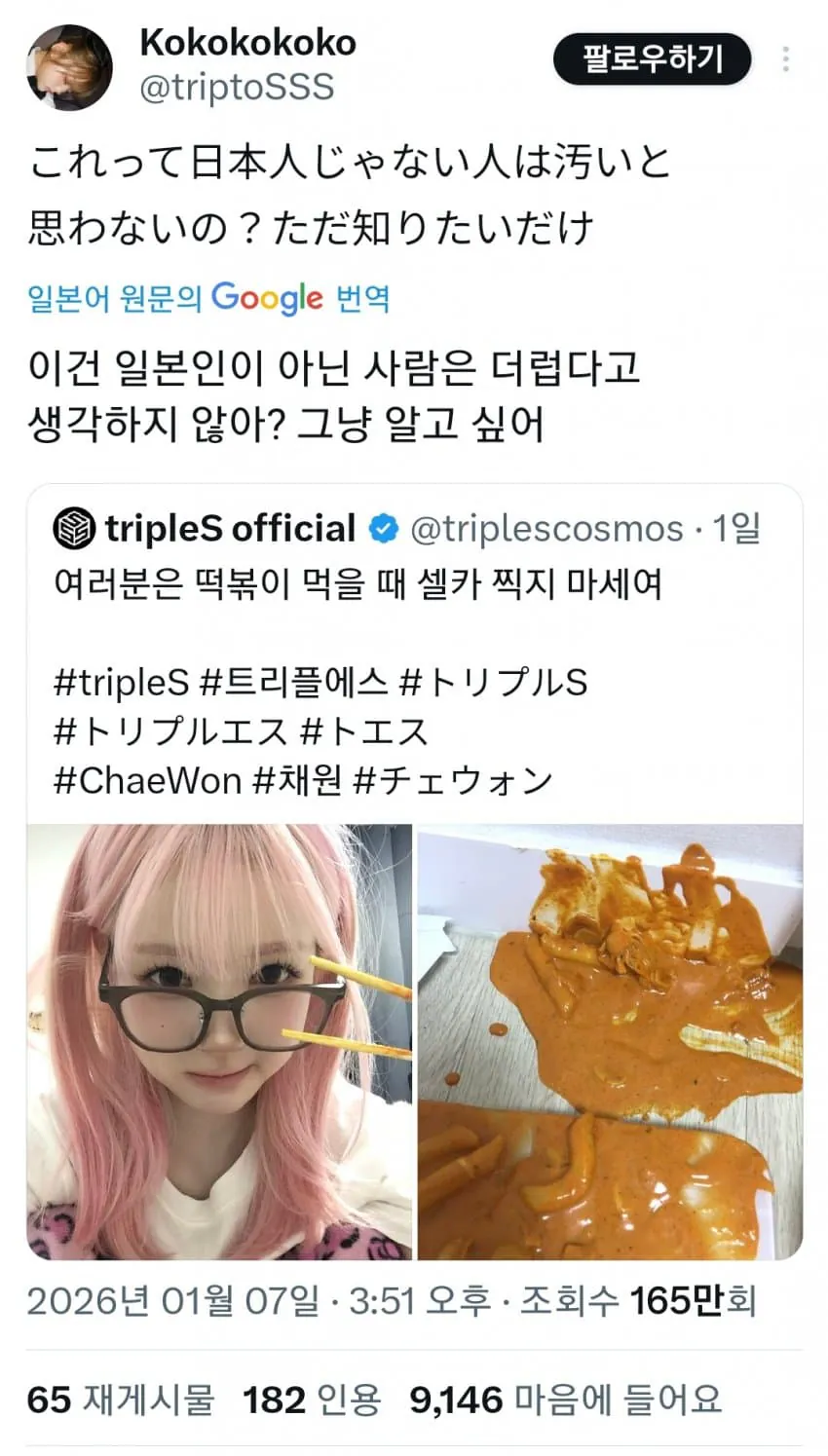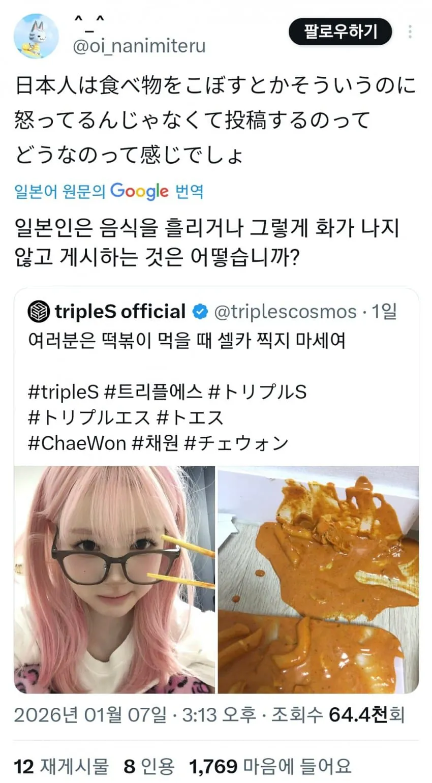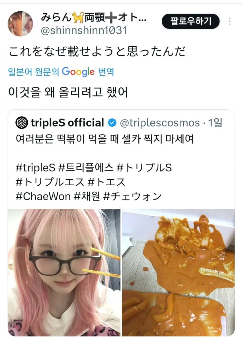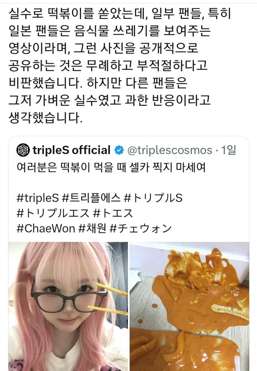 트리플에스 채원이 실수로 떡볶이를 쏟았는데