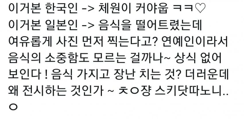 음식쏟은 한국 아이돌을 보고 분노한 일본인들