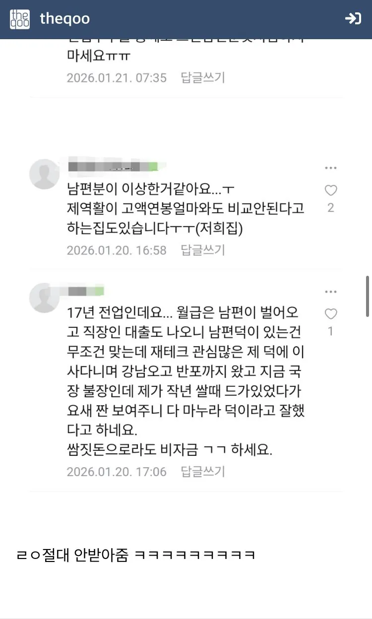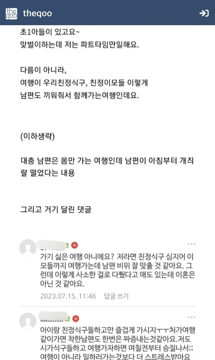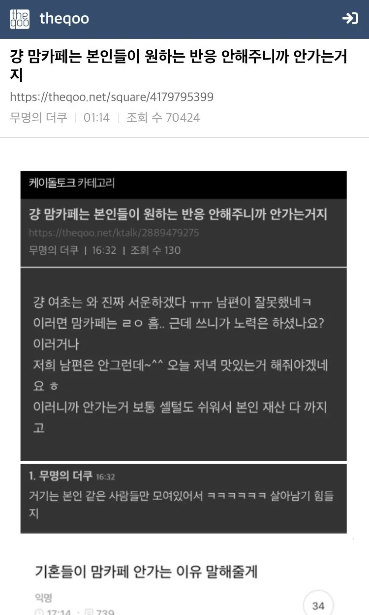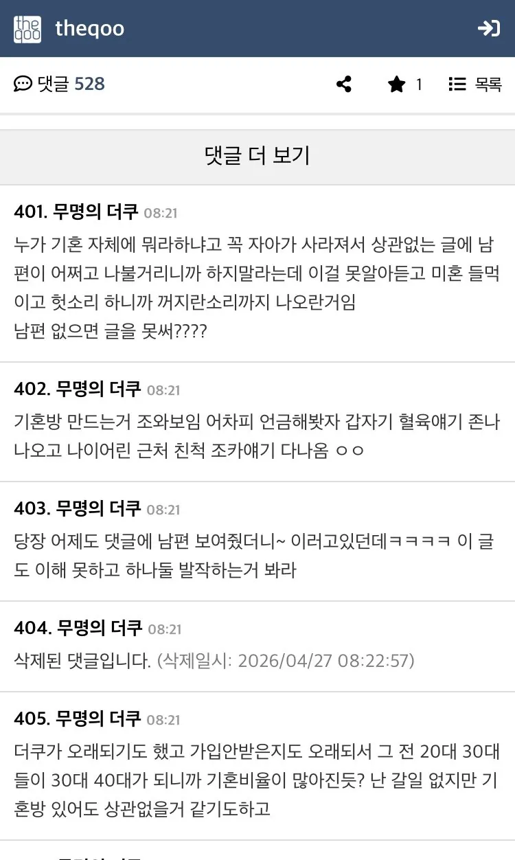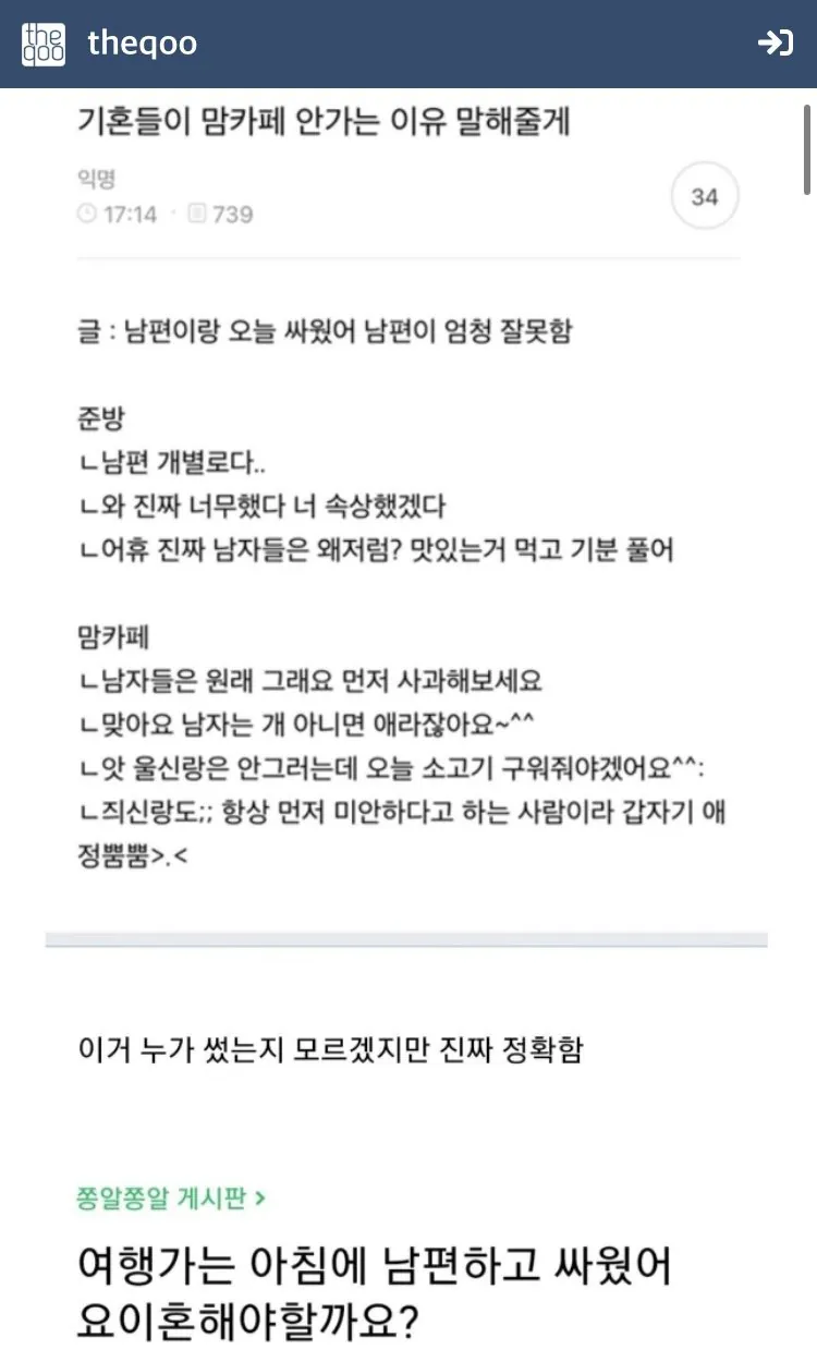 일부 결혼하고서도 정신 못차린 애들이 남편 욕하고 싶어 미혼 노괴들에게 붙어있는 모습이다