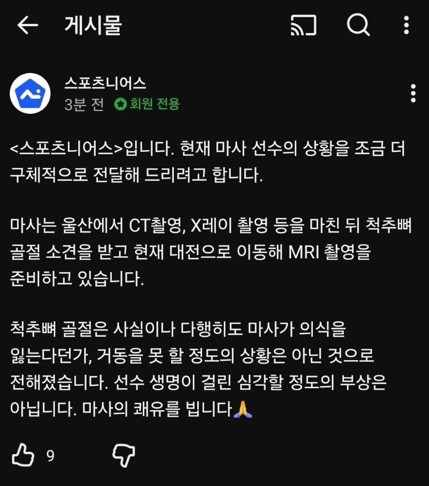 마사 선수 척추뼈 박살낸 울산현대 조현택