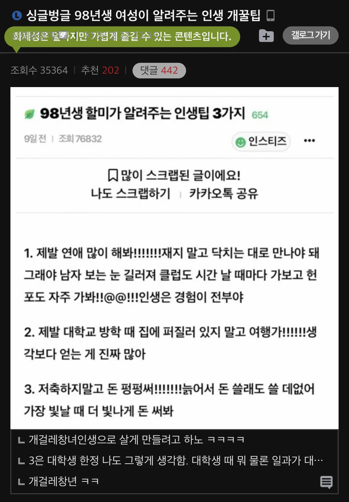 싱글벙글 98년생 여성이 알려주는 인생 개꿀팁