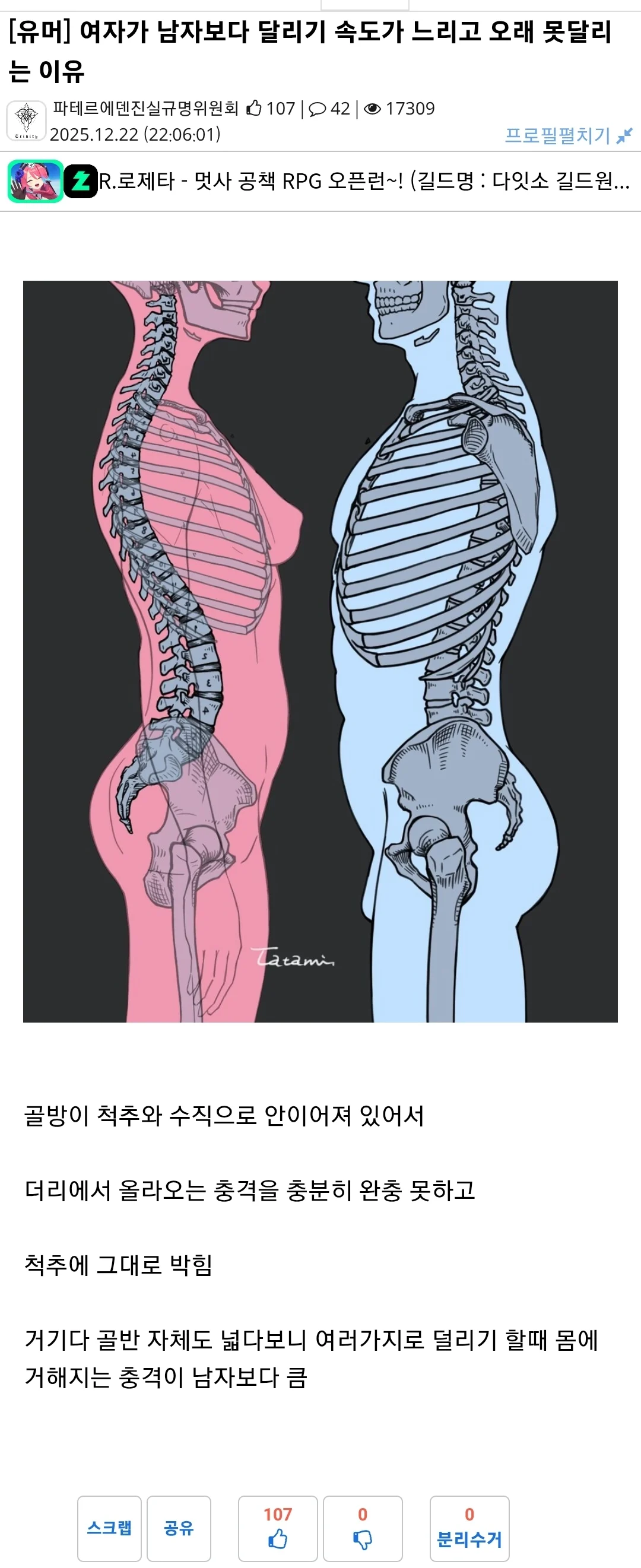 여자가 남자보다 달리기 느리고 오래 못 달리는 이유