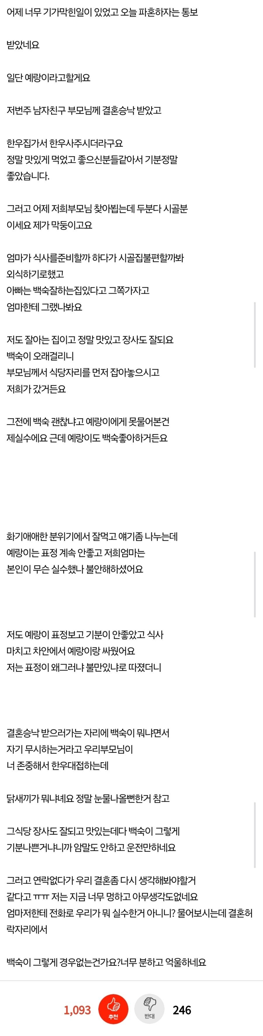 예비신부가 상견례 후 파혼 통보 받은 이유