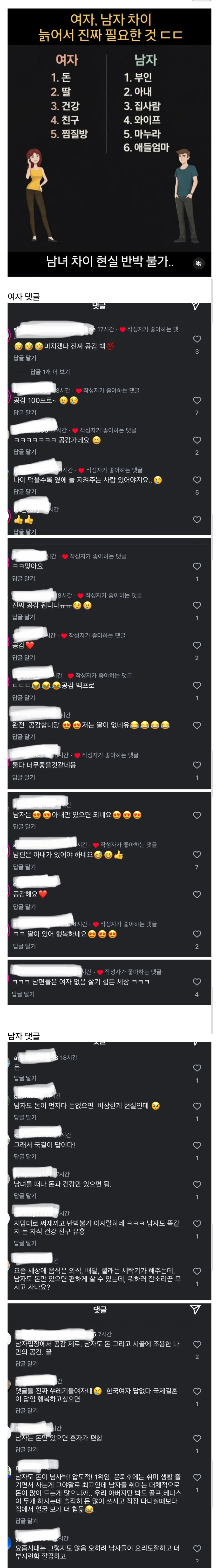 여자 vs 남자... 늙어서 진짜 필요한 것