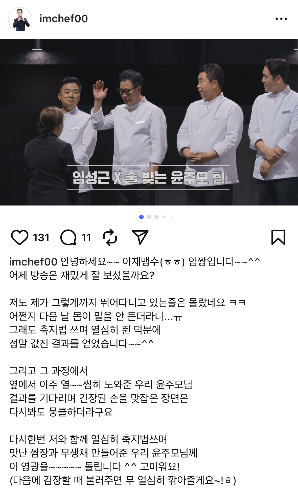 방금 올라온 흑백요리사 임성근 임짱 인스타