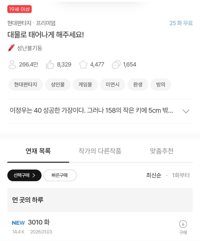 야설로 무려 3000화 연재중인 작품