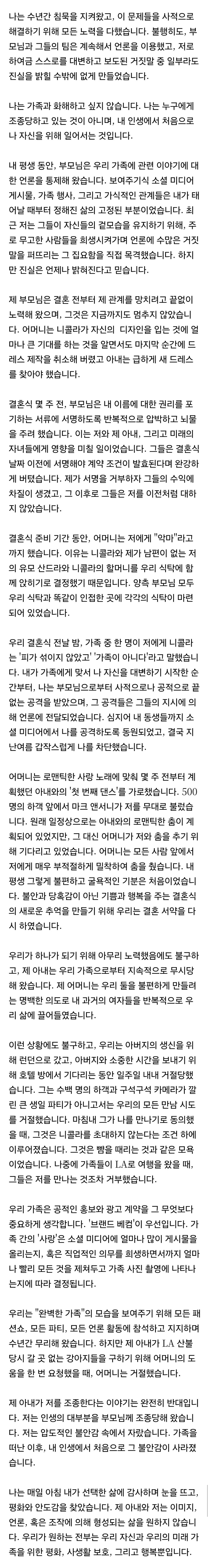가족들과 절연 선언 & 폭로한 브루클린 베컴 인스타