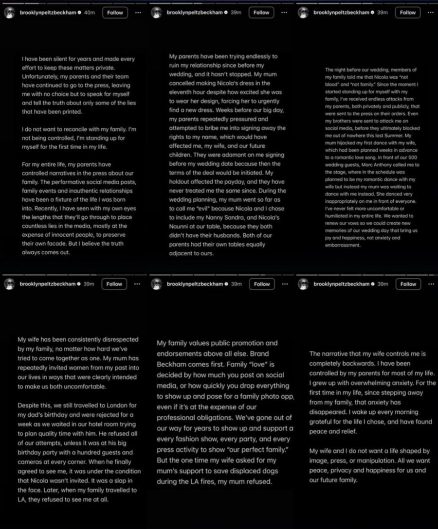 요약 : 배컴 아들이 여친 때문에 가족과 절연가족들과 절연 선언 & 폭로한 브루클린 베컴 인스타