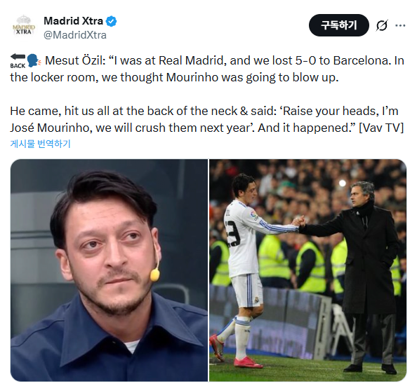 메수트 외질이 말하는 레알 시절 무리뉴 썰