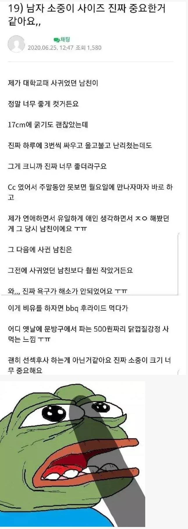 19) 남자 소중이 사이즈 진짜 중요한 거 같아요